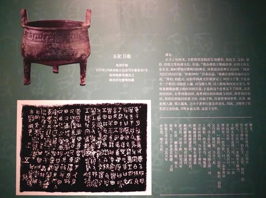 何尊銘文,記述了文王受命、武王滅商、成王遷都等西周時期的重大政治事件,這與《尚書》之《洛誥》《召誥》中的記載相吻合,從而證實了歷史文獻的真實性,為西周歷史的研究和青銅器的斷代,提供了重要的實物資料。
